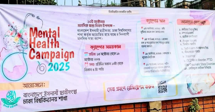 বিশ্ব মানসিক স্বাস্থ্য দিবস উপলক্ষে ঢাকা বিশ্ববিদ্যালয় (ঢাবি) শাখা ইসলামী ছাত্রীসংস্থা চারদিনব্যাপী একটি মানসিক স্বাস্থ্য ক্যাম্পের আয়োজন করেছে। শিক্ষার্থীদের মানসিক সুস্থতা রক্ষা, আত্মবিশ্বাস বৃদ্ধি এবং ইতিবাচক চিন্তা চর্চার প্রতি উৎসাহ জাগানোই এই উদ্যোগের মূল লক্ষ্য।