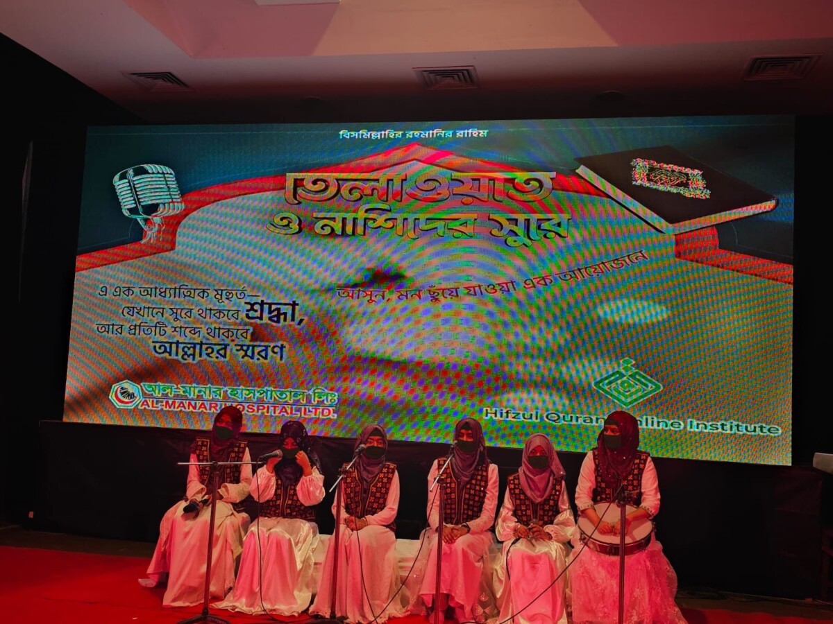 এই সময় স্টেজে হিফজুল কুরআন অনলাইন ইনিস্টিটিউটের উস্তাজারা উপস্থিত ছিলেন—