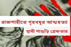 নারী সংবাদ রাজশাহীতে গলায় ফাঁস দিয়ে শিউলী খাতুন (১৬) নামে এক গৃহবধূ আত্মহত্যা করেছেন। গত মঙ্গলবার রাতে শোয়ার ঘর থেকে তার ঝুলন্ত লাশ উদ্ধার করে পুলিশ। নিহত শিউলী নগরীর শালবাগান এলাকার সামিউল বাশিরের স্ত্রী। এ ঘটনায় নিহতের স্বামী ও শাশুড়িকে গ্রেফতার করেছে পুলিশ। এ ঘটনায় থানায় একটি আত্মহত্যার প্ররোচনার মামলা দায়ের হয়েছে। শিউলীর বাবা মোখলেসুর রহমান বাদি হয়ে মঙ্গলবার রাতেই ......... Read Mord